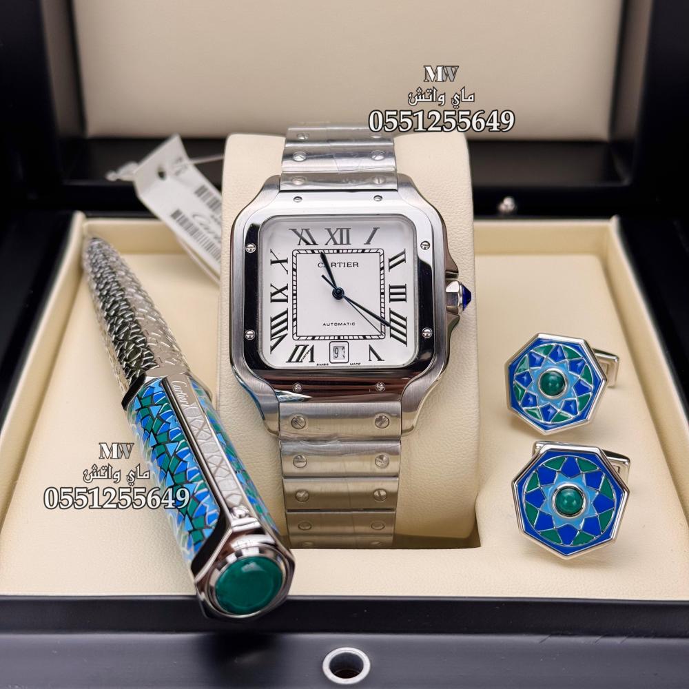 طقم كارتير الفاخر : ساعة وقلم وكبك Cartier